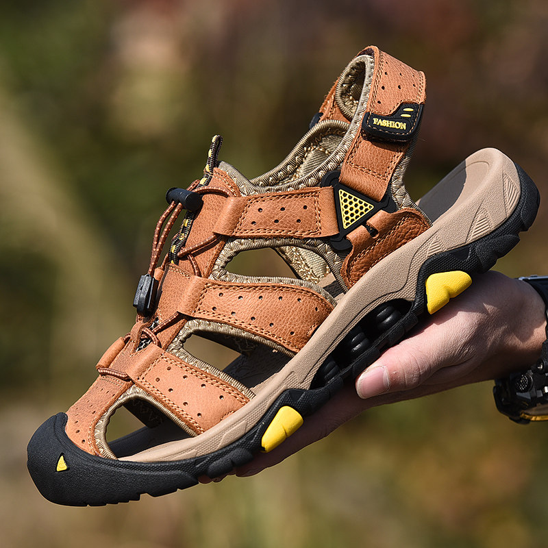 Мужская пляжная обувь, летние быстросохнущие сандалии, из натуральной кожи