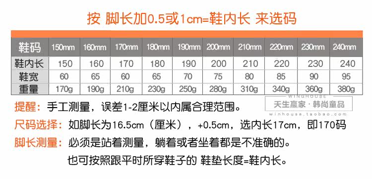 | Размер обуви: | 150 ярдов (внутренняя длина 15 см), 160 ярдов (внутренняя длина 16 см), 170 ярдов (внутренняя длина 17 см), 180 ярдов (внутренняя длина 18 см), 190 ярдов (внутренняя длина 19 см), 200 ярдов (внутри 20 см), 210 ярдов (внутренняя длина 21 см), 220 ярдов (внутренняя длина 22 см), 230 ярдов (внутренняя длина 23 см), 240 ярдов (внутренняя длина 24 см) |