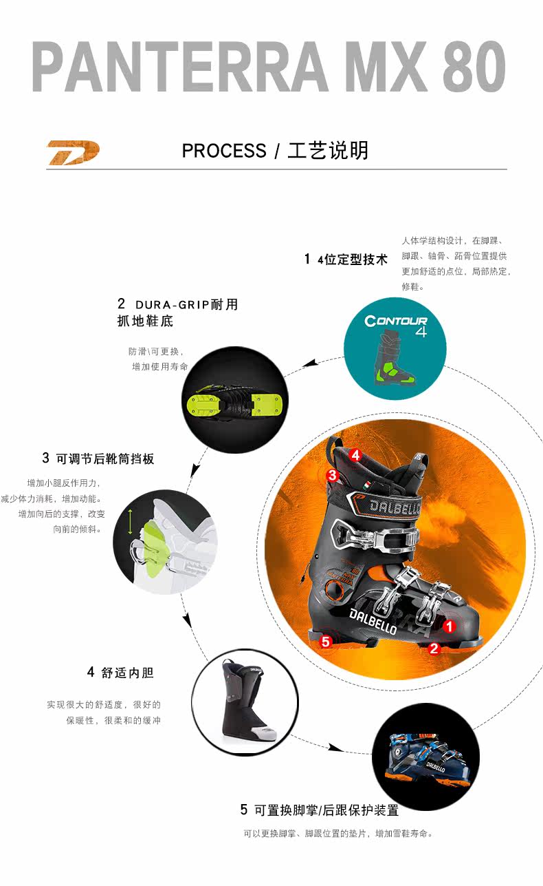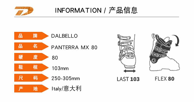 Итальянский Dalbello/Domelo Ski Shoes Double Board Mid -High Ski Shoes Panterra MX 80