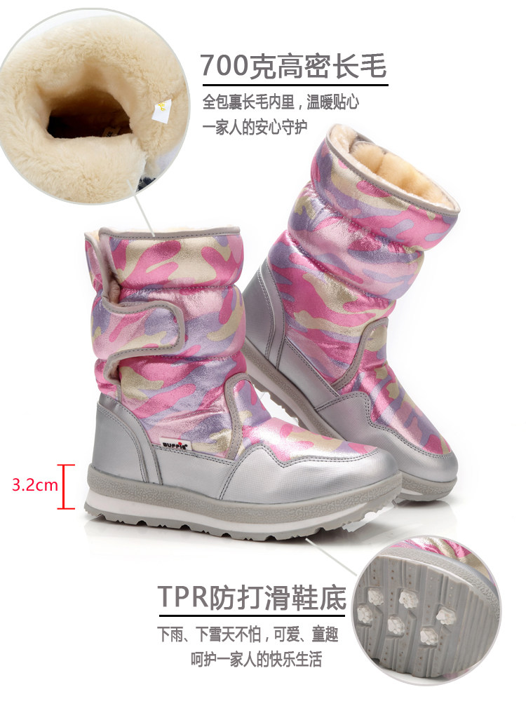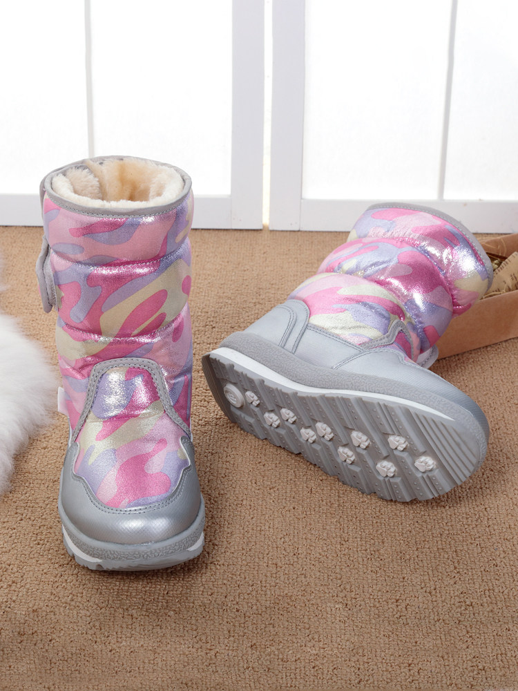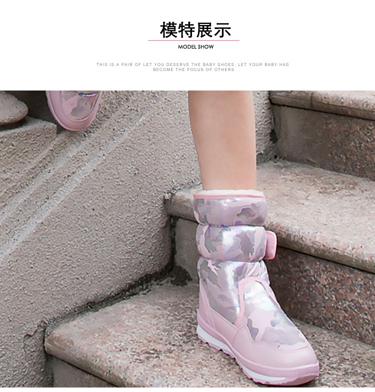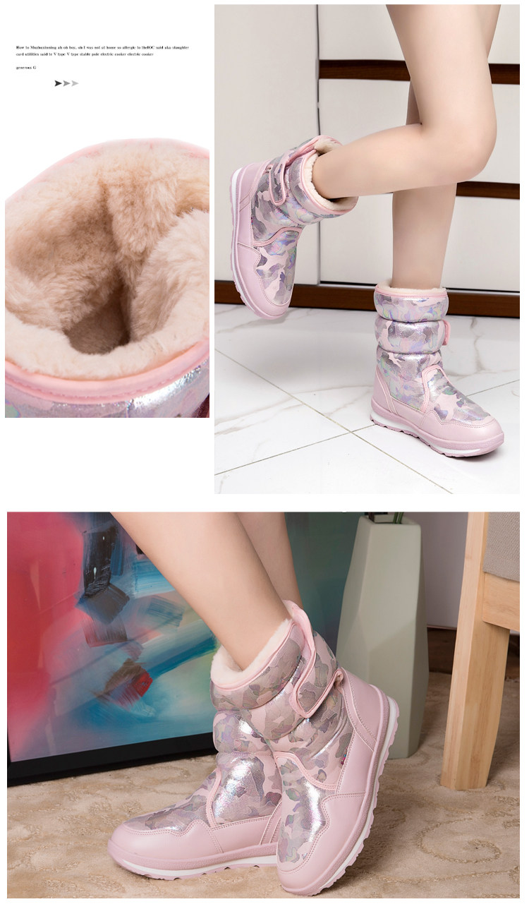 Детские водонепроницаемые и противоскользящие зимние ботинки с мехом и бархатом.