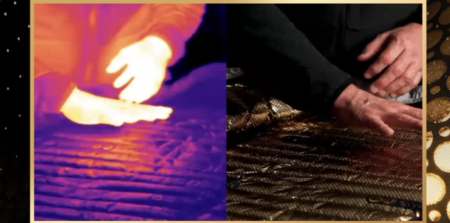 На рисунке выше показано, что ткань отражает тепло человека через тепловой инструмент.