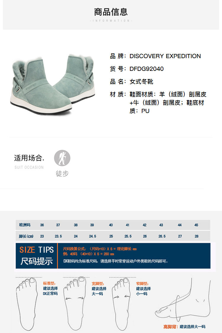 Discovery Исследуйте женскую обувь на открытом воздухе снежные ботинки в зимней новой мех интегрированы плюс бархатные утолщенные лыжные ботинки