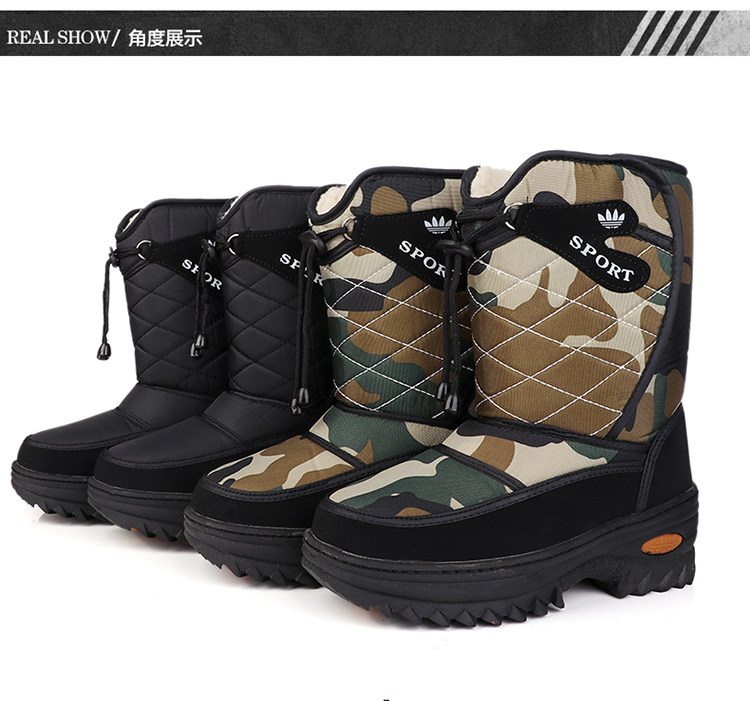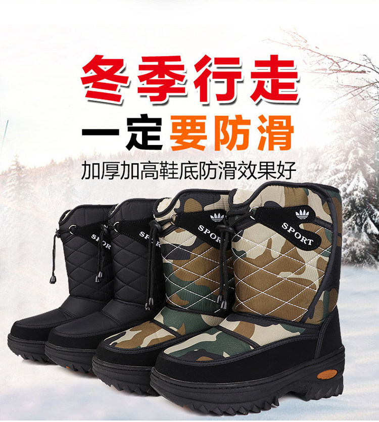Бесплатная доставка на северо -восток зимой Новые открытые туризм теплые снежные хлопчатобумажные сапоги, снежные анти -слабые, толстое шерстяное смешанное хлопчатобумажные туфли