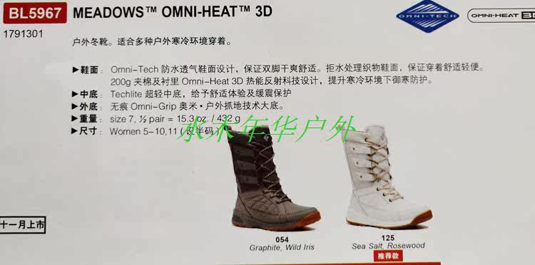 Columbia/Columbia Outdoor 19 осень и зимний продукт Новый продукт женский 3D Термическая энергия удерживает зимние ботинки BL5967