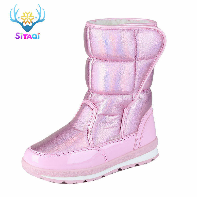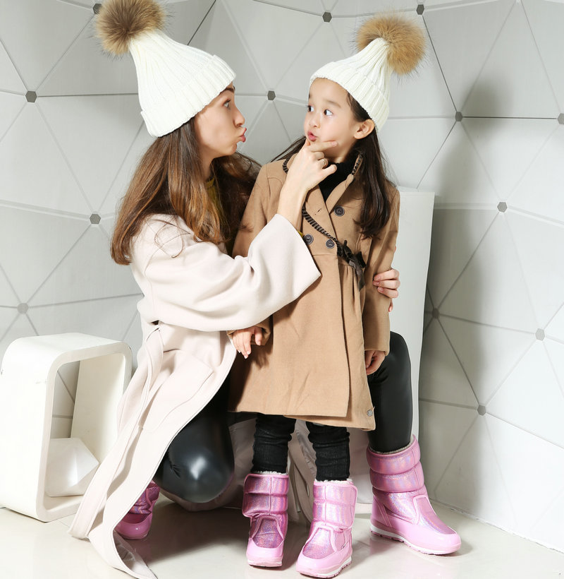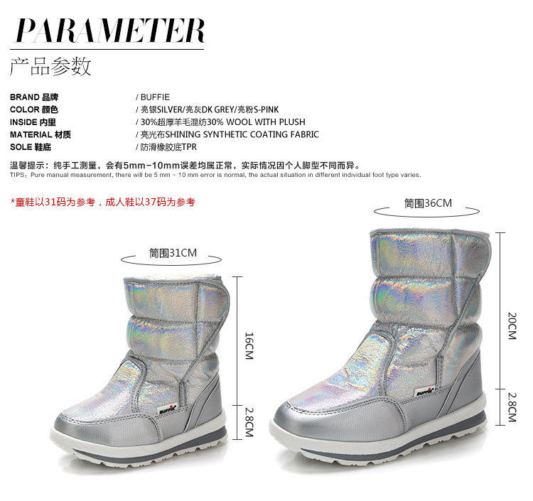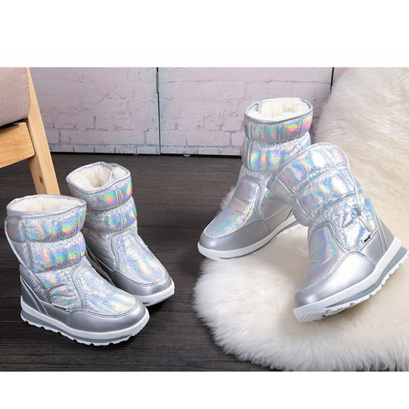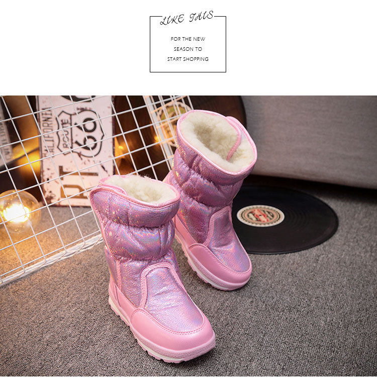 Детские снежные ботинки девочка мех интегрированная утолщенная водонепроницаем