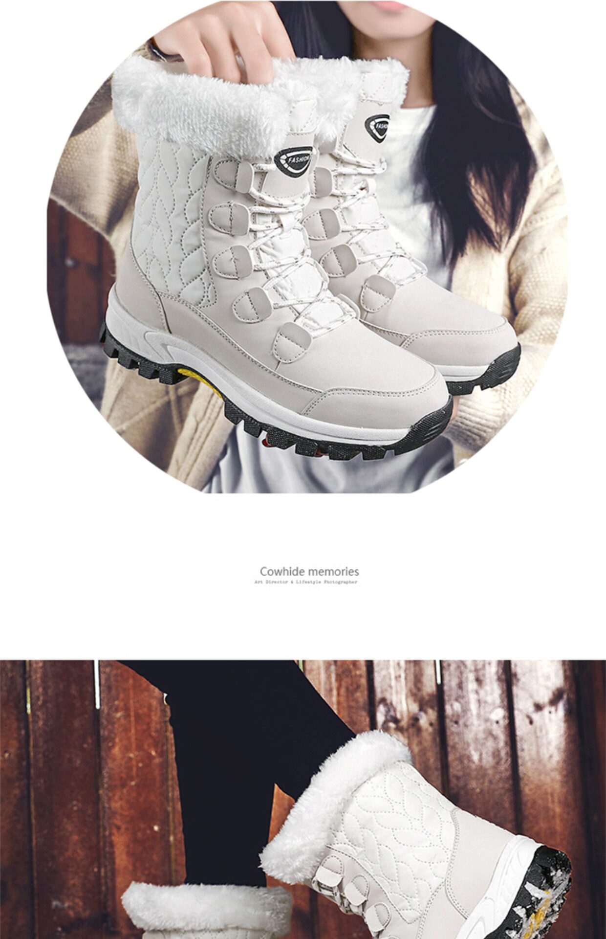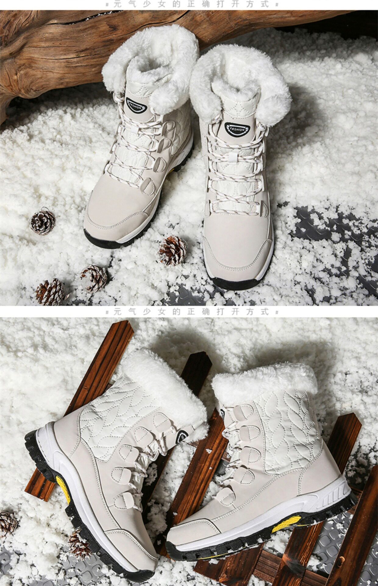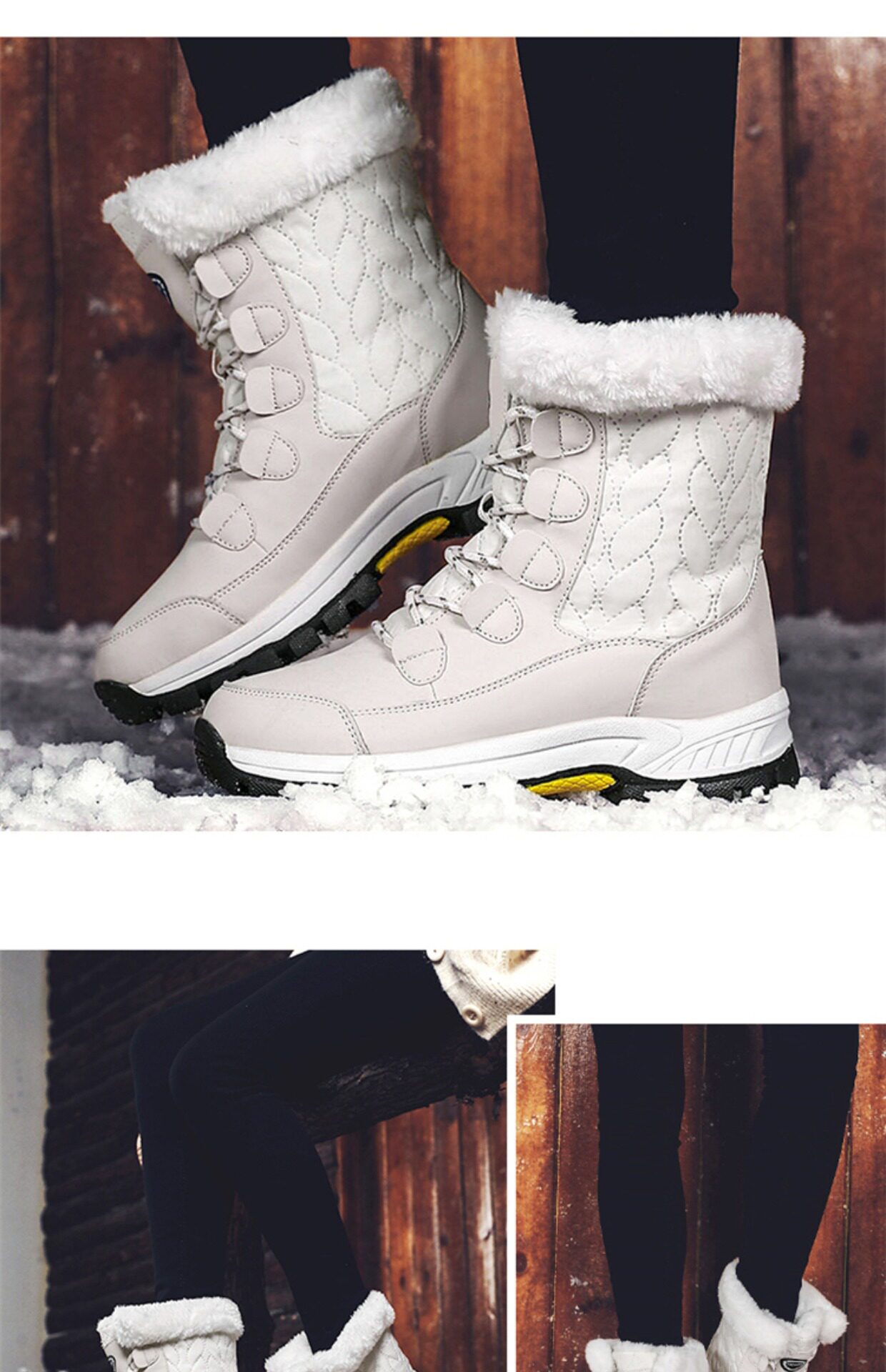 Нескользящие утепленные удерживающие тепло белые высокие высокие сапоги