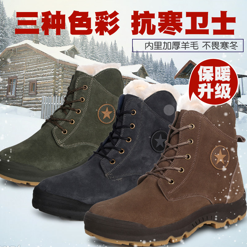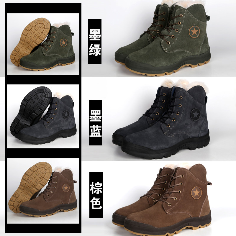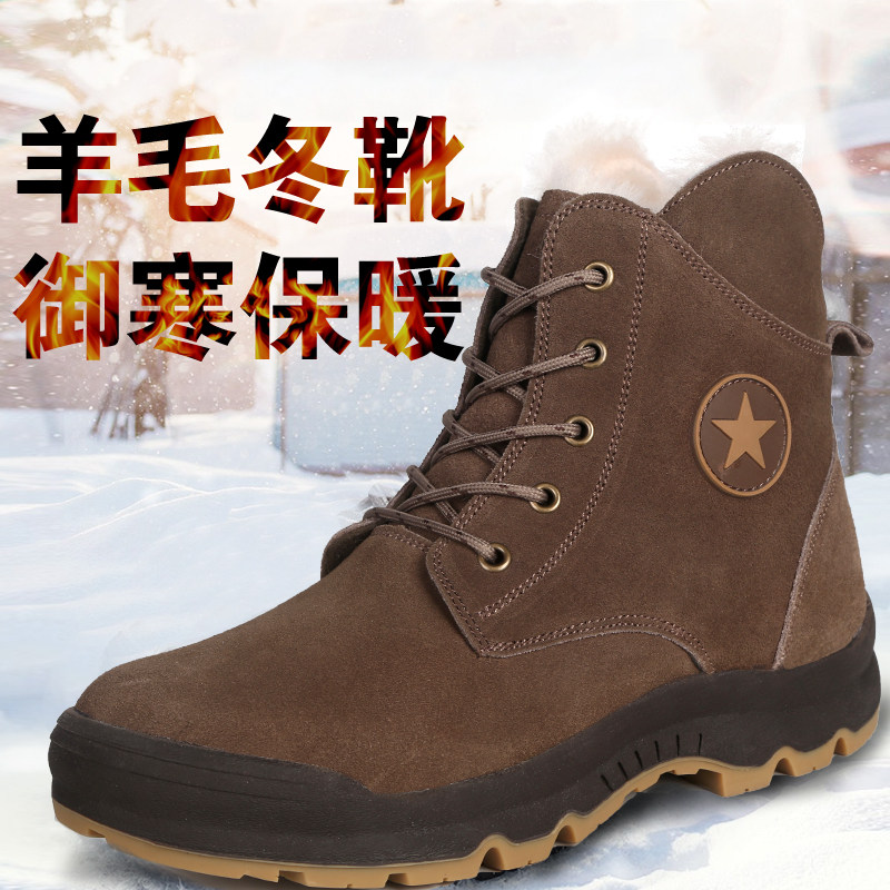 Мужские северо -восточные снежные сапоги Harbin снежнее плюс бархатный анти -литровый анти -выявленный шерстяная шерсть, чтобы сохранить теплую северную хлопковую обувь
