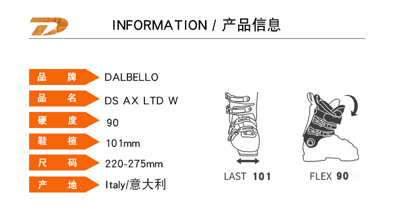 2021 Новый итальянский Dalbello Damelo Shuangban Ski Shoes Женские лыжные ботинки DS AX Ltd W 90