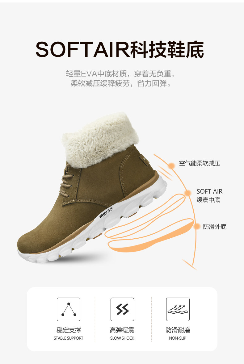 Высокие зимние нескользящие флисовые сапоги подходит для мужчин и женщин, удерживающие тепло износостойкие ботинки для отдыха