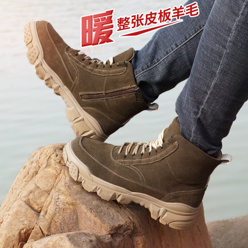 Зимние нескользящие утепленные удерживающие тепло сапоги, из натуральной кожи