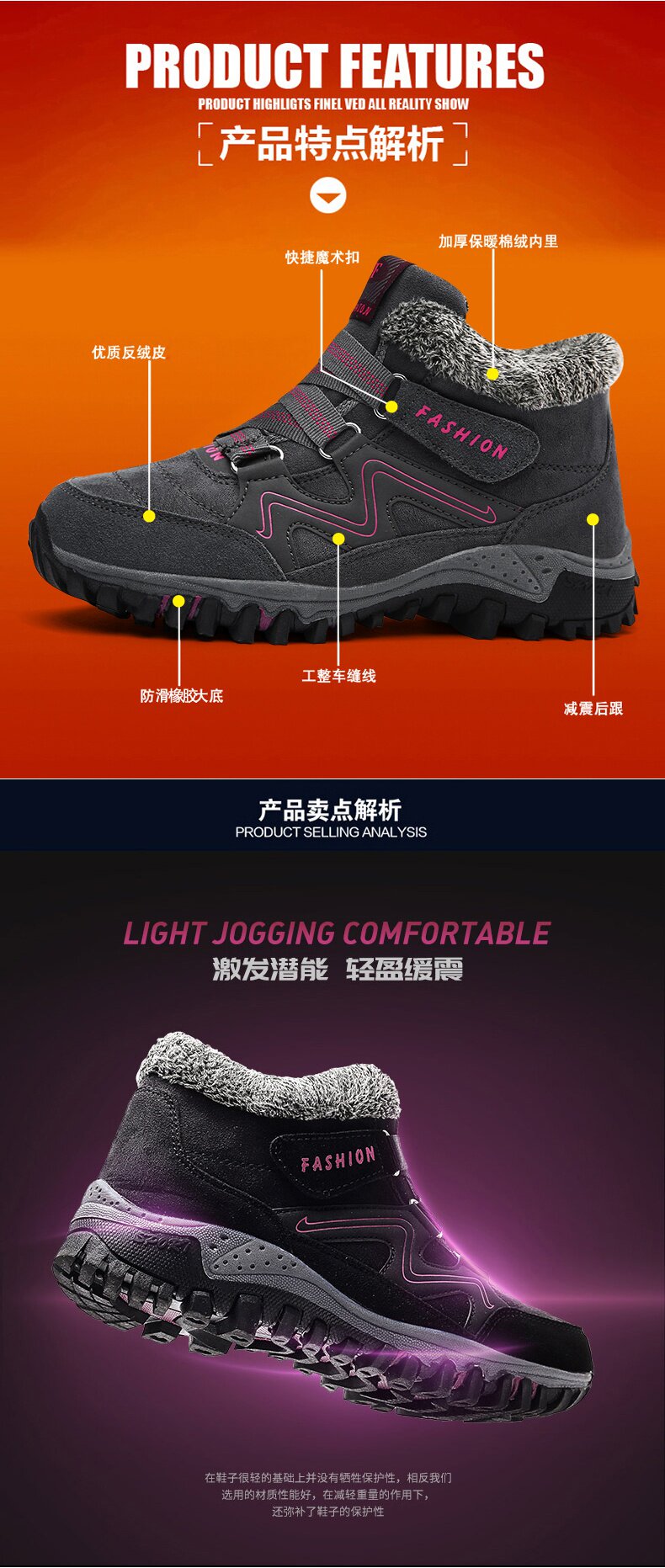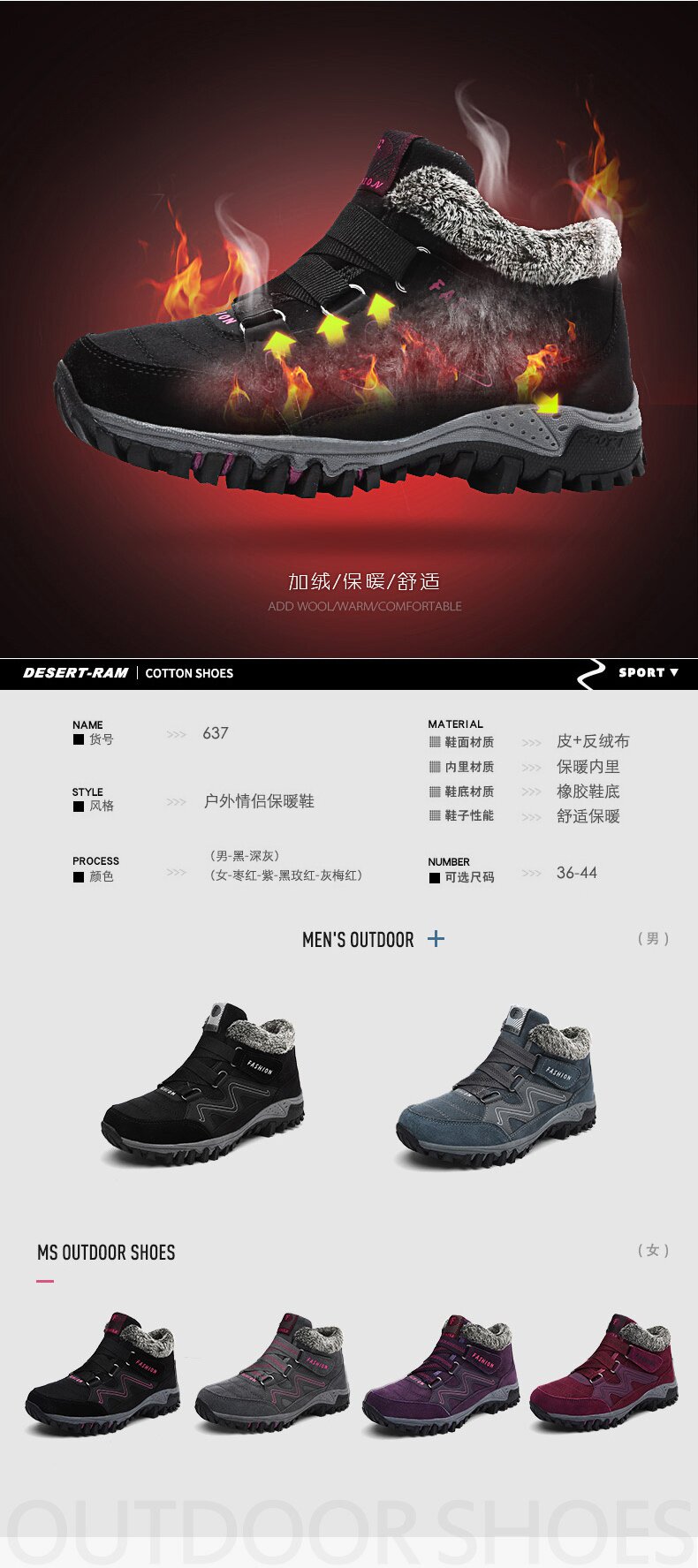 Зимние утепленные сапоги, ботинки для влюбленных, большой размер