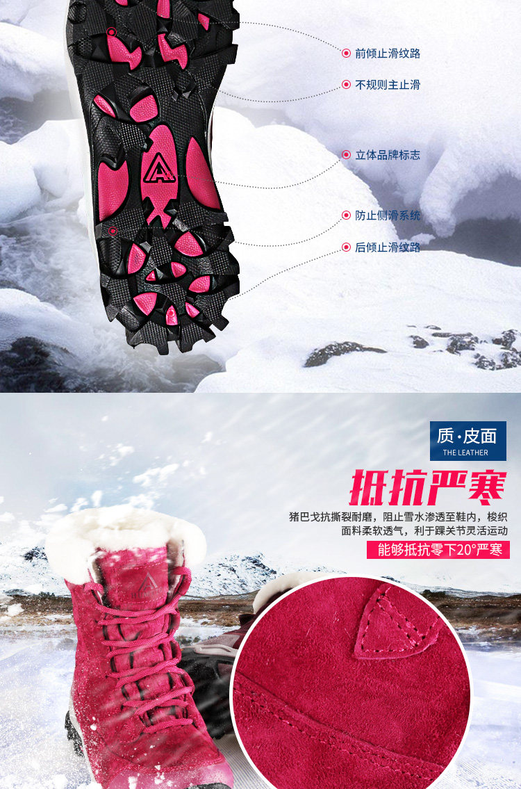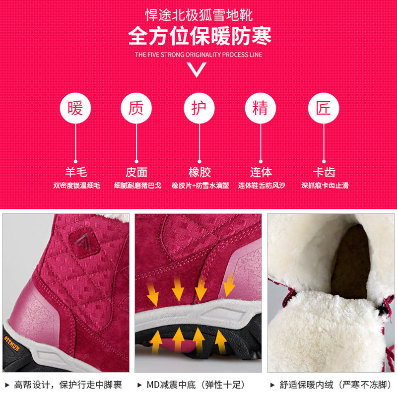 Нескользящие удерживающие тепло лыжные утепленные сапоги, средней длины, большой размер