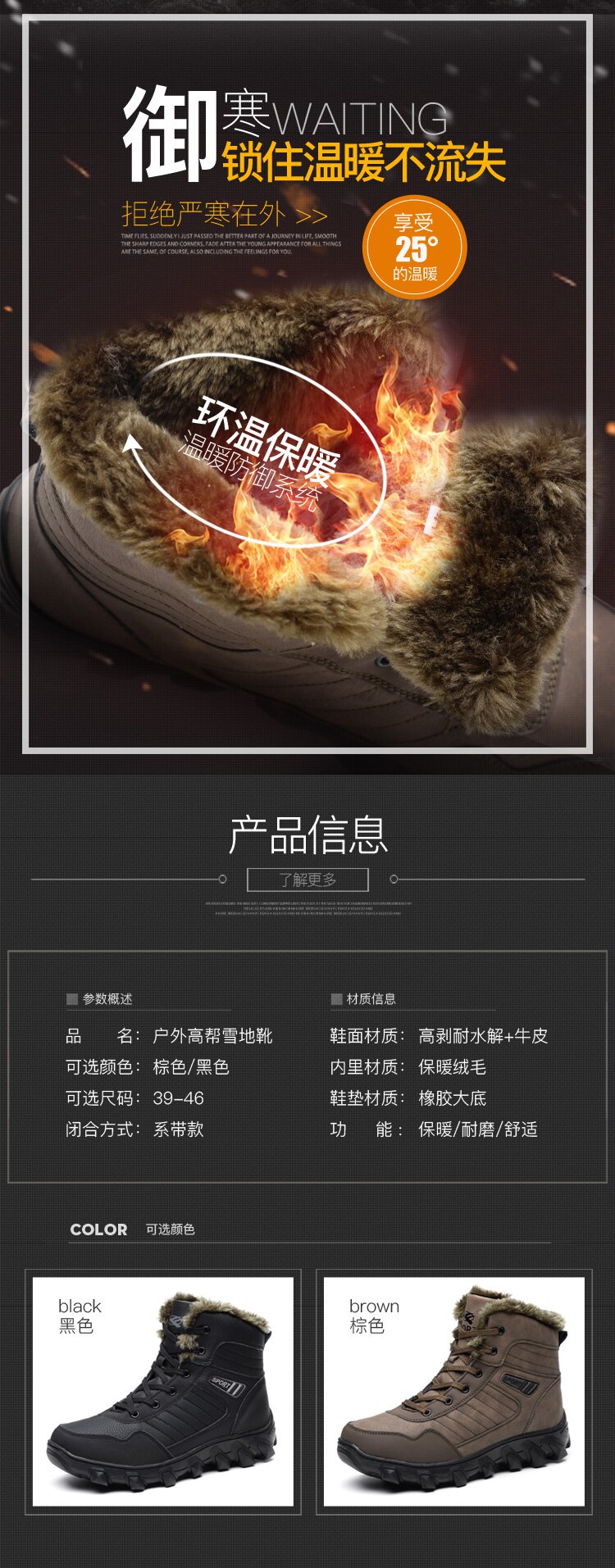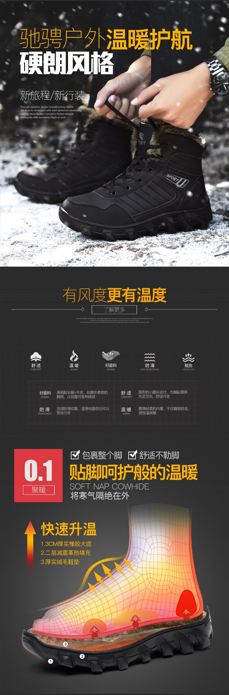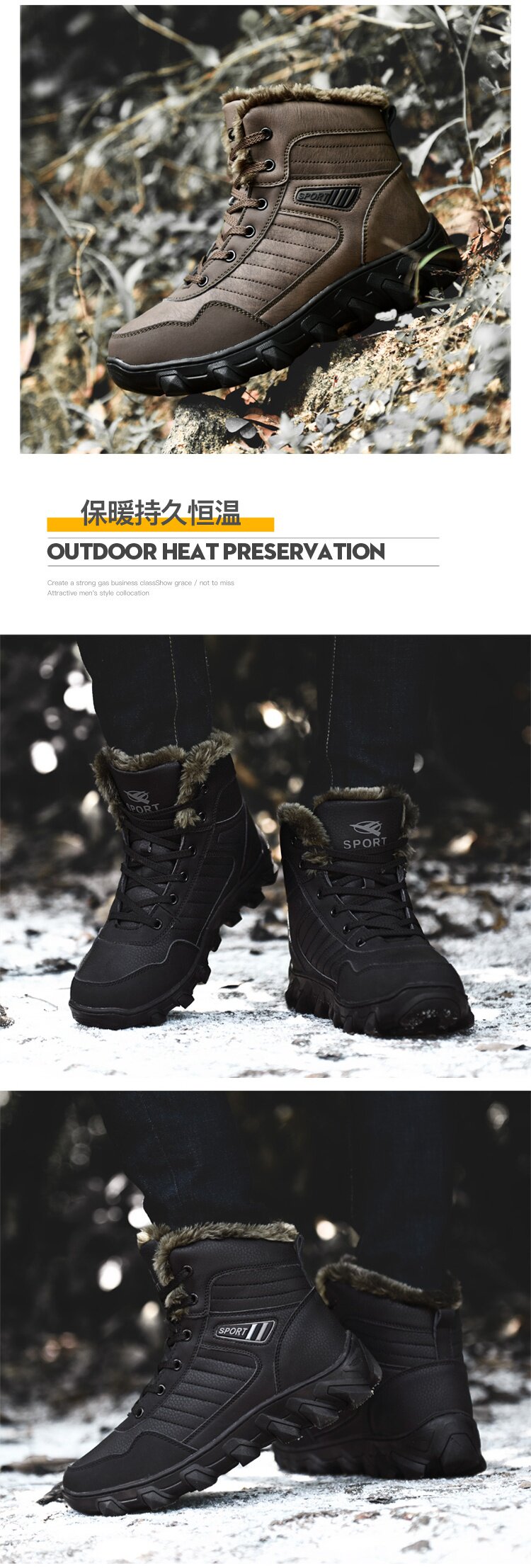 Мужские зимние высокие нескользящие удерживающие тепло сапоги, для мужчины среднего возраста