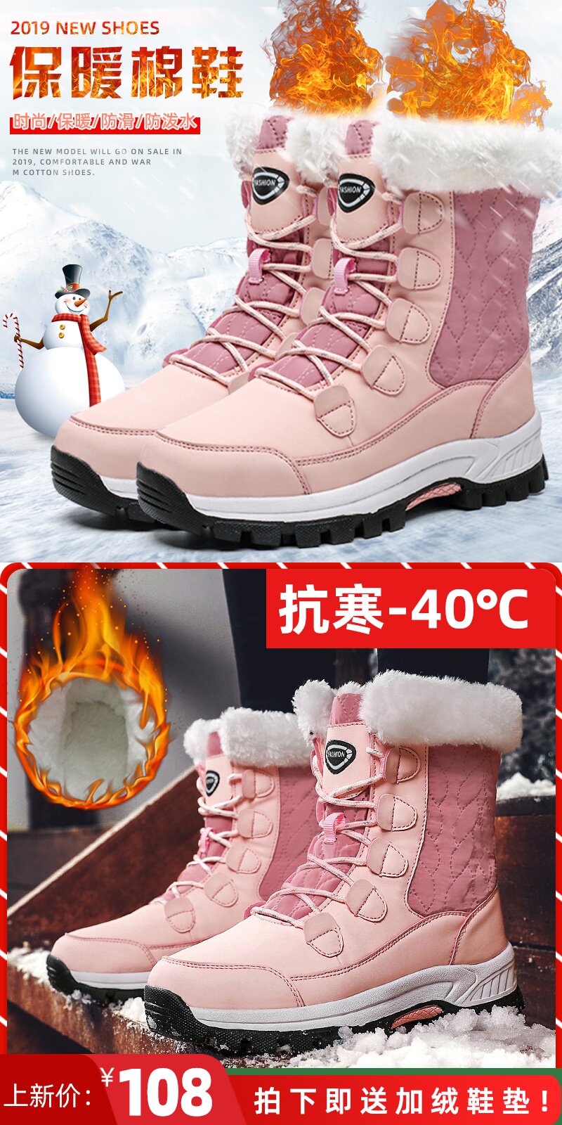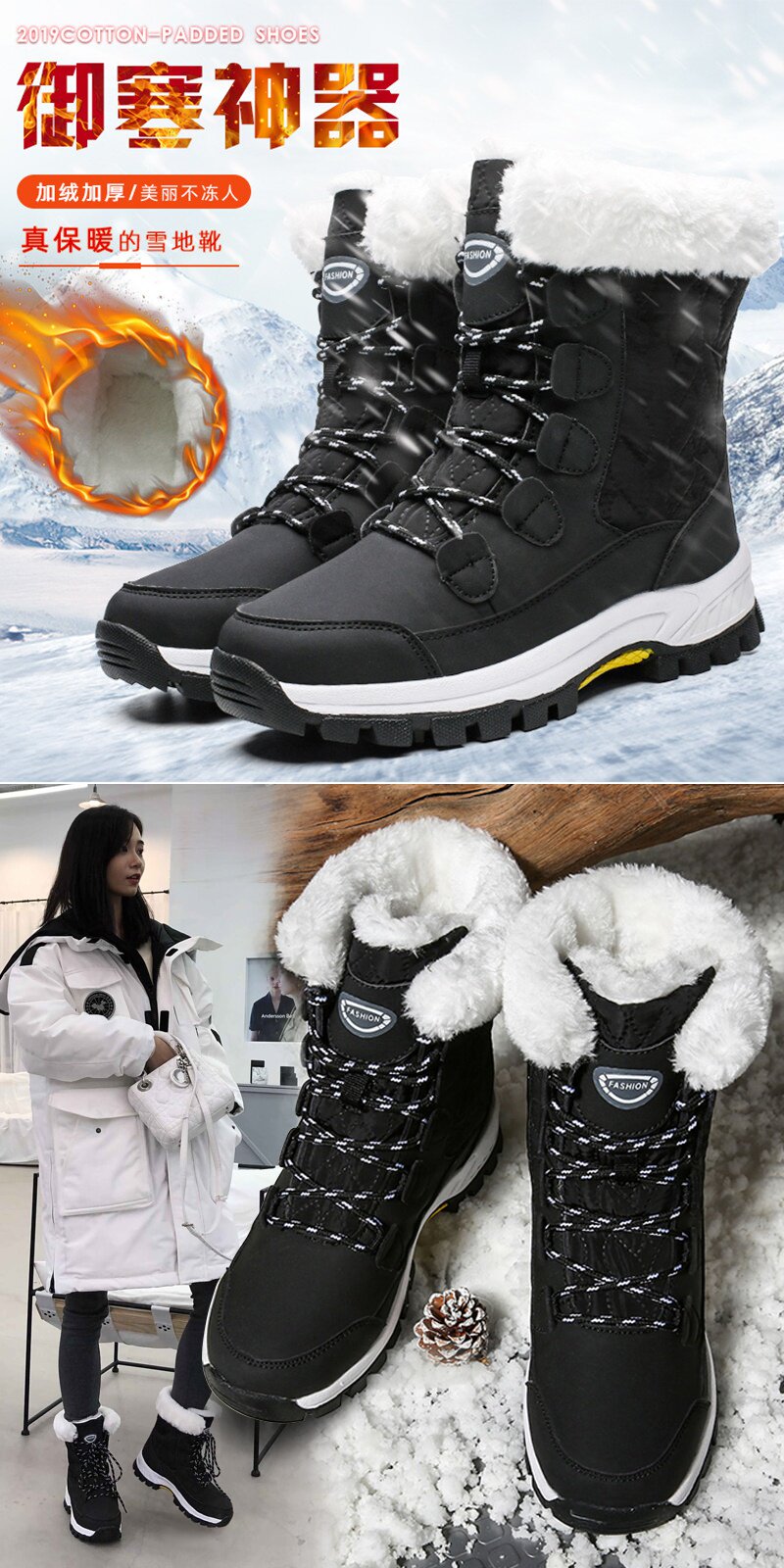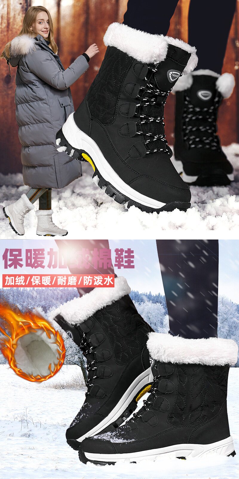 Зимние нескользящие сапоги, высокая обувь для путешествий, большой размер