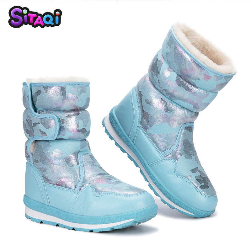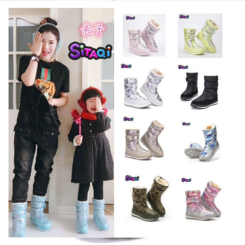 Северо -восток холодный анти -кольцо ноль 40 градусов снежные ботинки Женщины мальчики и дети Харбин Зимние анти -кишечные водонепроницаемые и бархатные хлопковые обуви