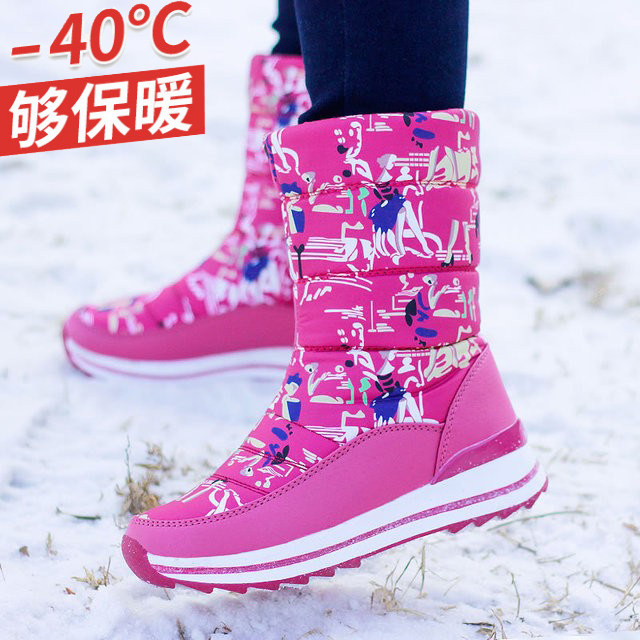 Северо -восток Харбин Харбин Зима минус 40 градусов цветочный цвет снежные ботинки Женские водонепроницаемые анти -кишки и теплые большие хлопковые туфли