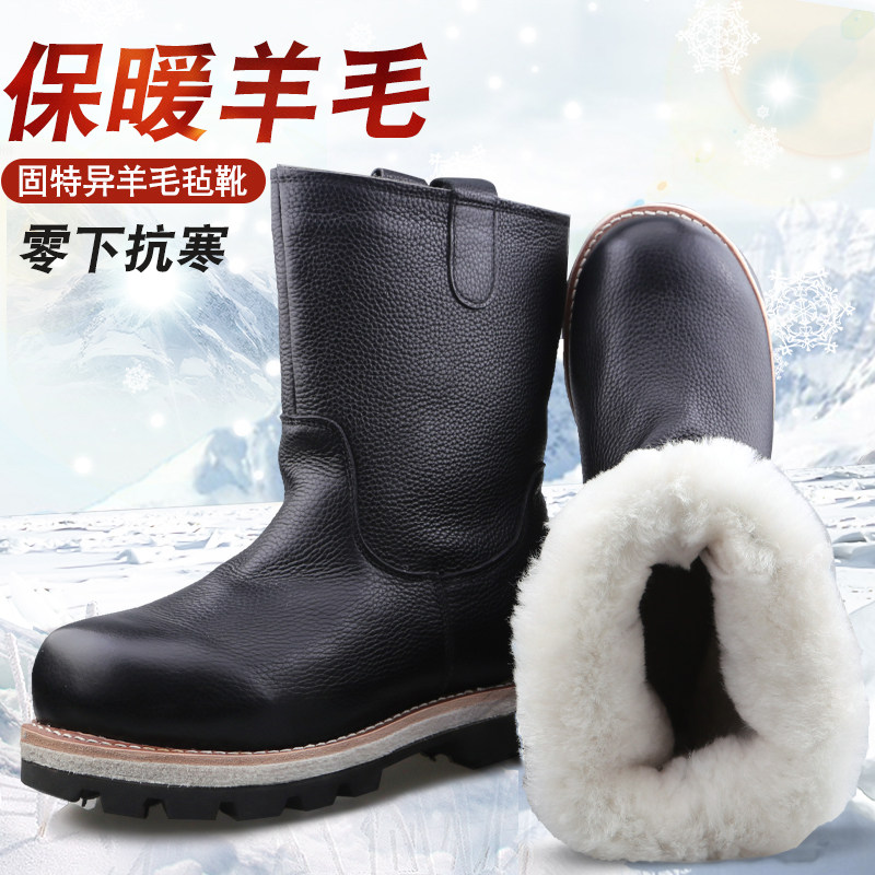 Дорожные флисовые кожаные высокие сапоги, шерстяной войлок, зимние ботинки