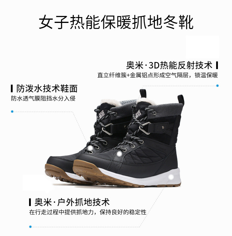 Колумбия искренняя женская водонепроницаемая термическая термическая энергия теплое сцепление анти-SKI Boots DL0085