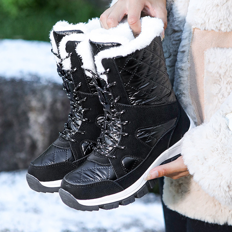 Зимние лыжные флисовые удерживающие тепло нескользящие сапоги, средней длины