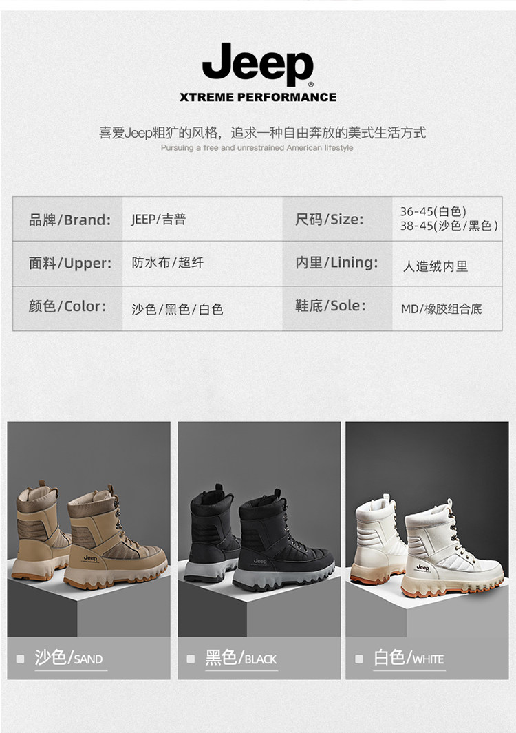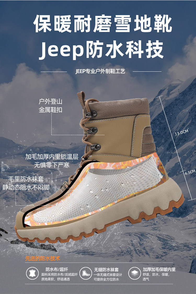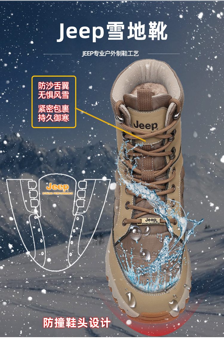 Jeep, утепленный джип, дорожные водонепроницаемые нескользящие альпинистские зимние удерживающие тепло сапоги