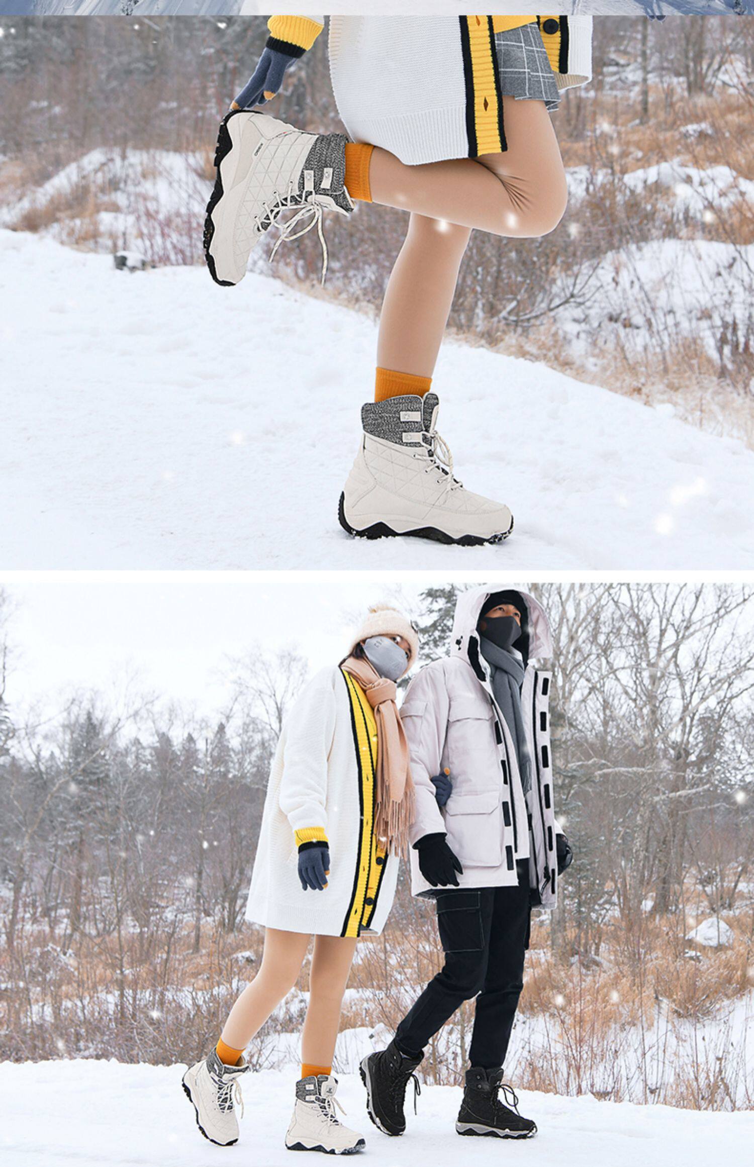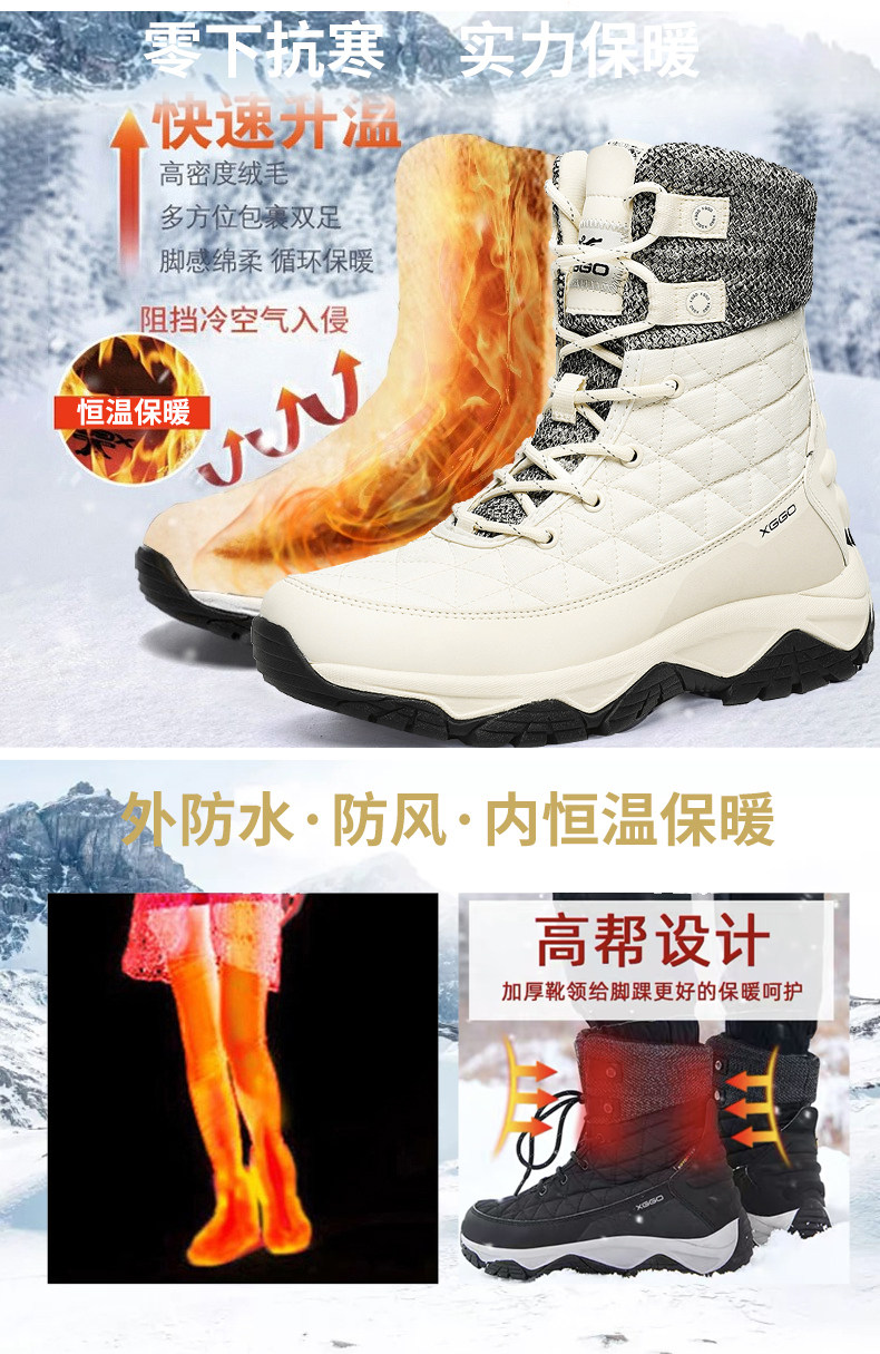 Зимние нескользящие высокие флисовые лыжные удерживающие тепло сапоги для влюбленных