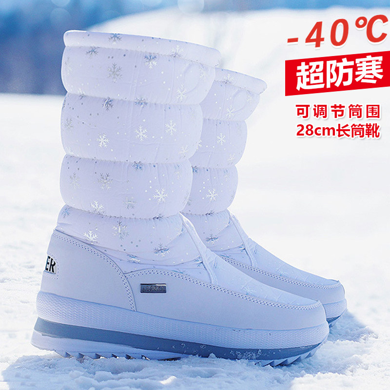 Северо -восточные зимние снежные ботинки Женская водонепроницаемая утолщенная теплая обувь на открытом воздухе с высокой температурой хлопчатобумажной туфли за минус 40 градусов холодной профилактики