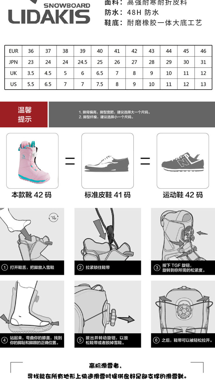 Lidakis Syster -Aboard Ski Shoes Pinghua Park All -Round TGF Стальная проволочная пряжка с лыжными ботинками быстро носить сапоги, чтобы согреться