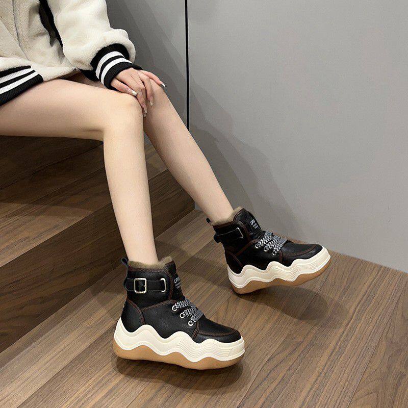 Зимние флисовые удерживающие тепло сапоги на платформе, 2022, большой размер, из натуральной кожи