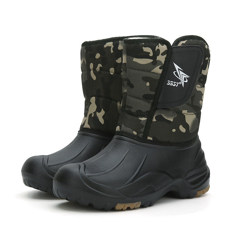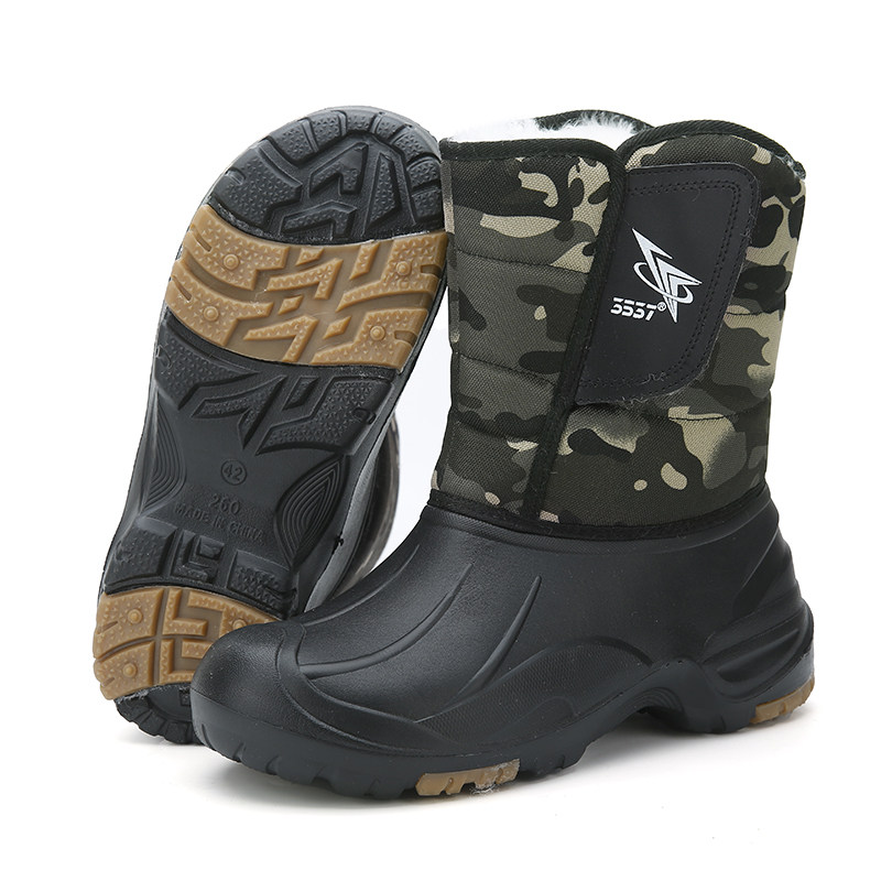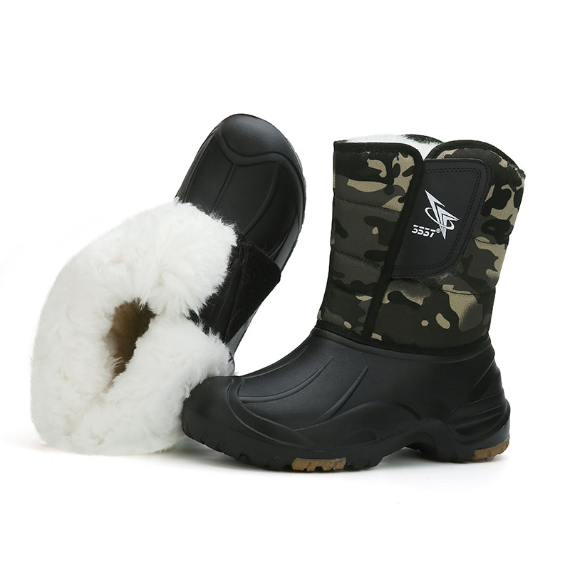 Зимние меховые универсальные уличные зимние ботинки с высоким берцем для мужчин, морозостойкая и теплая обувь для рыбалки, водонепроницаемая, нескользящая, очень толстая хлопчатобумажная обувь.