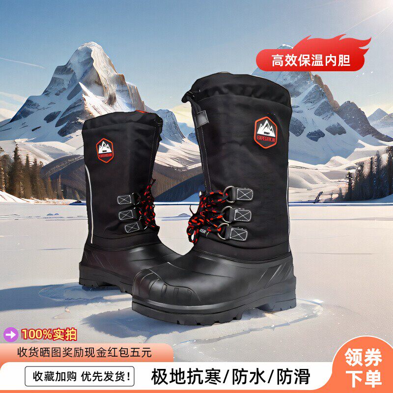 Холодный сопротивление-100 ° Исландия на высокие водонепроницаемые полярные снежные ботинки Мужская зимняя открытая антискридная пленка для хлопка теплое ледяное рыбалка