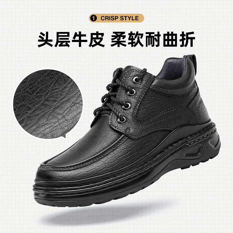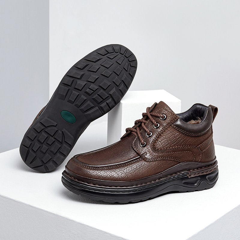 Демисезонные зимние классические высокие флисовые удерживающие тепло сапоги для кожаной обуви на платформе для отдыха, из натуральной кожи