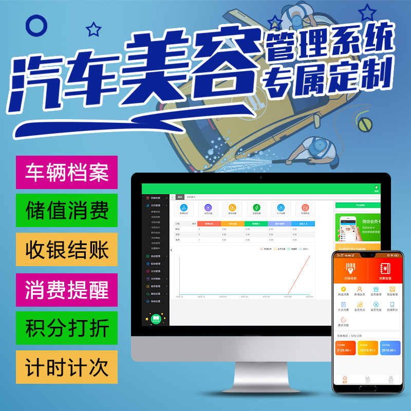 Auto Beauty Store Store Car Washing Store Store Управление картами системы программного обеспечения для чтения карты считывания карта с помощью машины WeChat Electronic Recharge Потребление потребления. Право на участие
