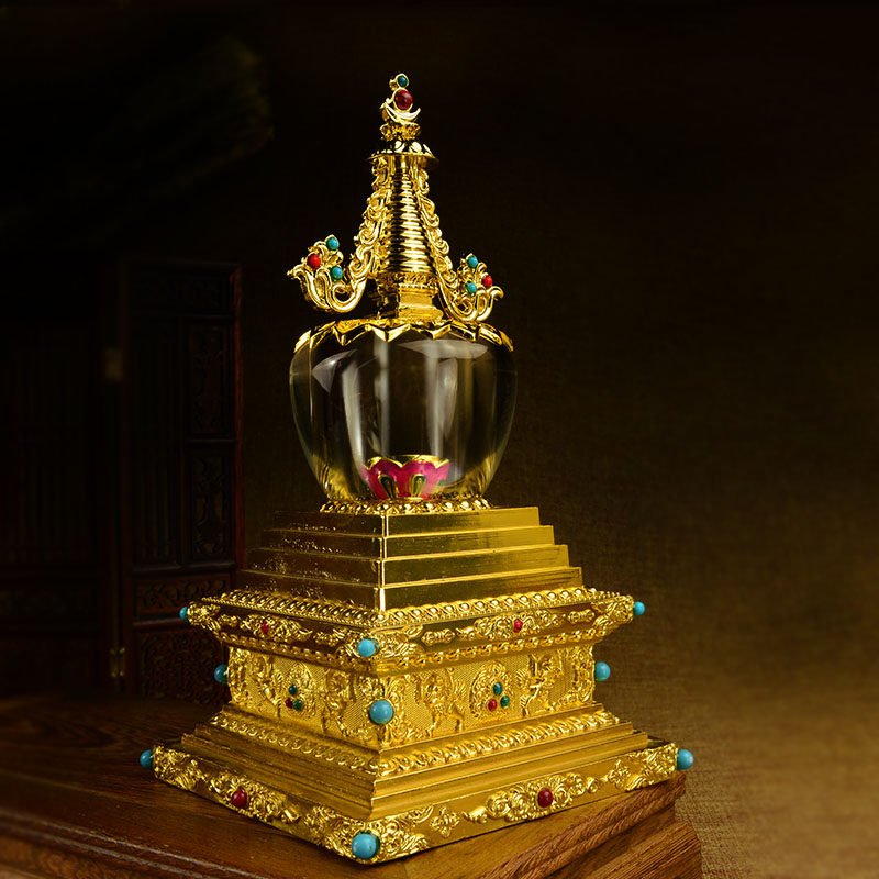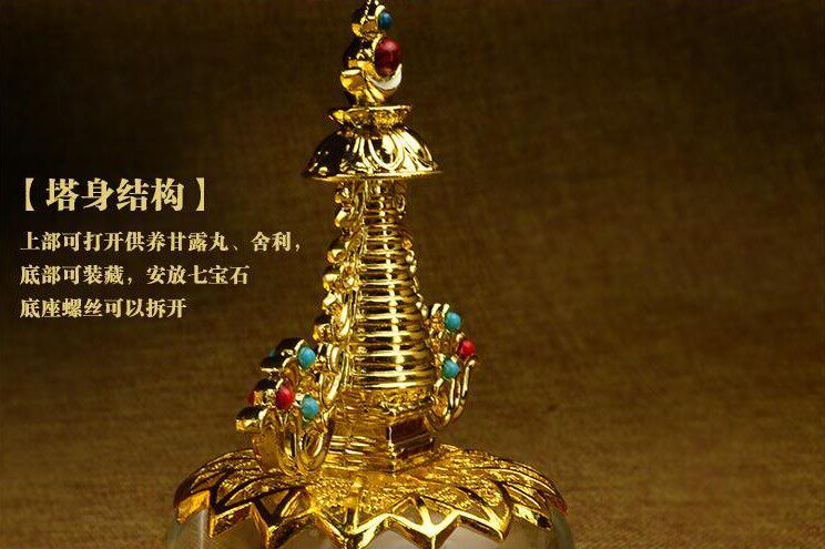Тибетские поставки бутик -позолоченные кристалл кристалл все еще башня Бодхи Тауэр Буллизи Высокая 17 см Бесплатная доставка
