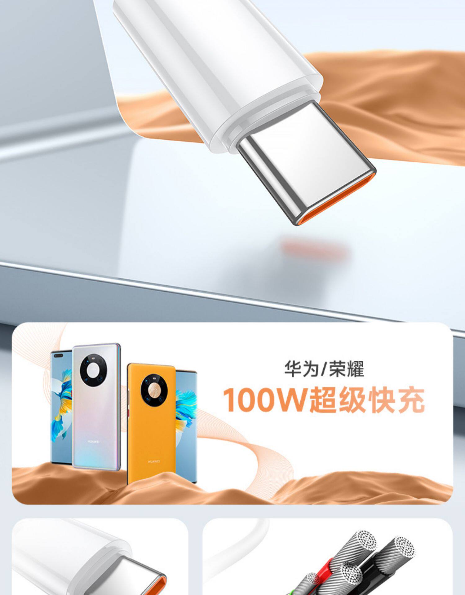 Римлянам применяет Huawei USB к типному кабелю быстрого заряда Mate10/V20X/30RS Porsche/40pro+Honor 50/60/70PRO Android Flash Зарядка кабель данных 100W 6A