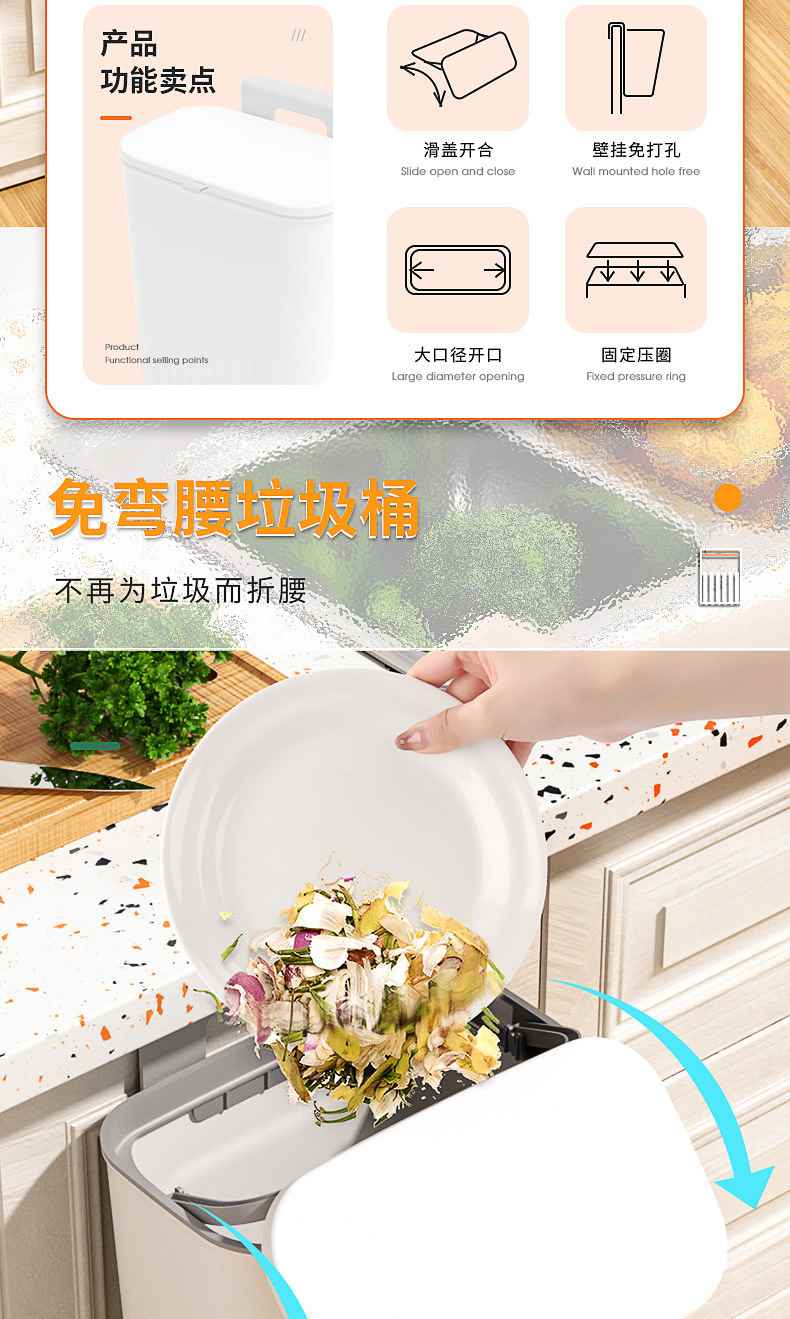 Кухонная мусорная бака кухонная корзина для хранения отходов дома ванная комната ванная комната большая -санитарная бочка -стена -пластичная корзина с ползунком