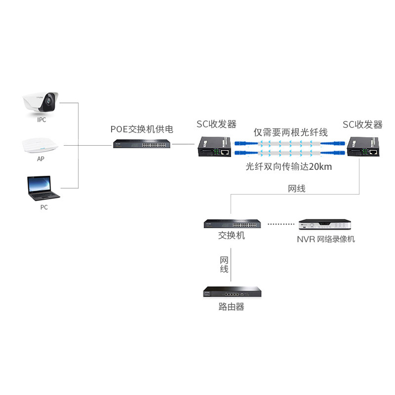Магазин возвращается, чтобы пропустить трансивером тысячи сетевых гигабитных волоконных волокон, пара однократного двойного волоконного волокна 5V2A приемопередатчика электроэнергии 20/40/60