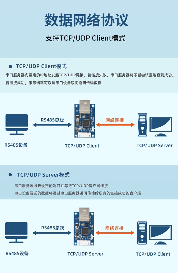 Yin erda uart ttl serial port в ethernet server protocol tcp/udp protocol TCP/UDP