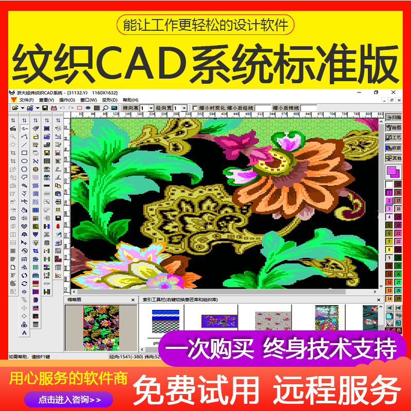★Системное программное обеспечение подходит для автоматизации процесса ткацкого ткацкого ткачества с типичной ткани различных спецификаций, таких как шелк, галстук, атласный атлас, писания, товарные знаки, полотенца, ковры, декоративные ткани и т. Д., Которые могут сотрудничать с различными компьютерными ткацкими и деревянными трансфер.