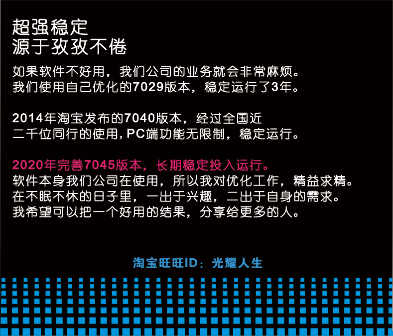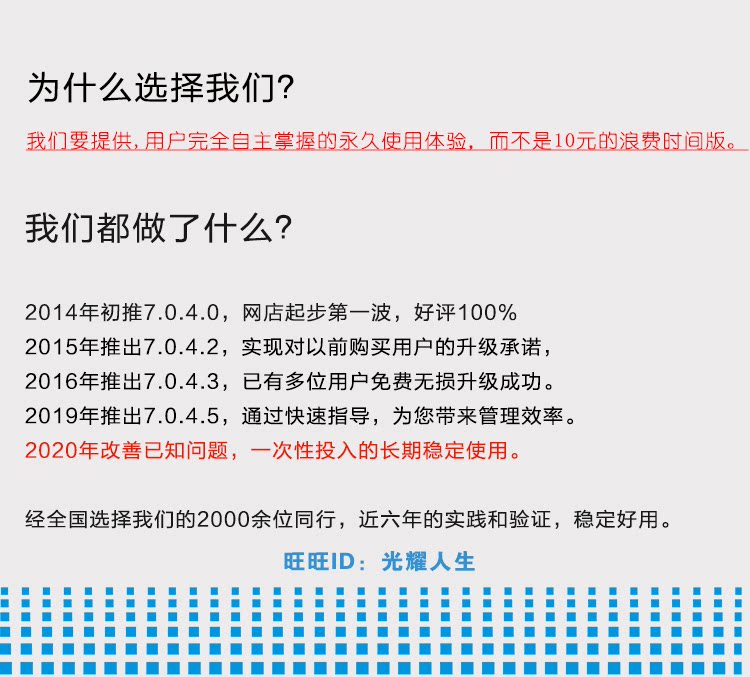 [软件已经多年,在淘宝做服务也做了六年多,如果您觉得用的不错,欢迎支持发展。]