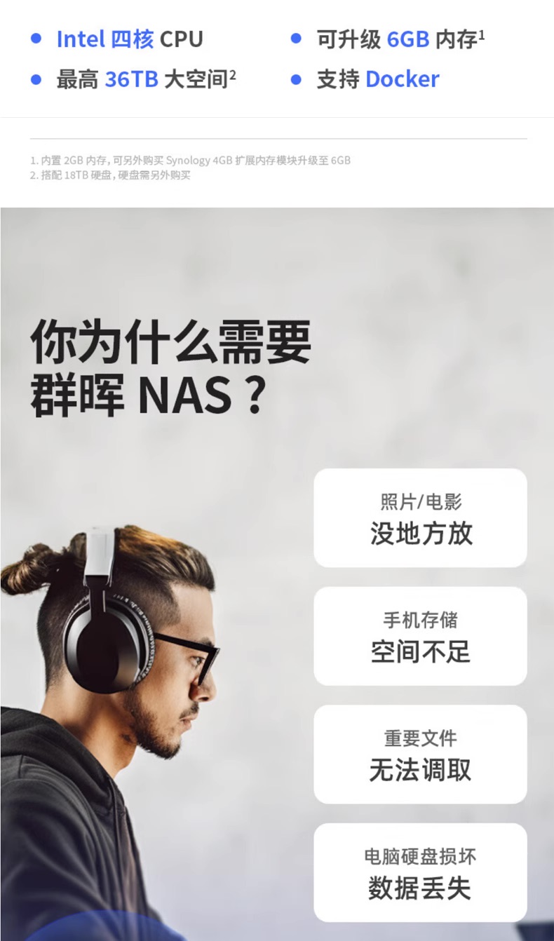Synology/群晖 DS224+ NAS Storage Server Персональное частное облачное предприятие 2 Офис. Использование семьи.