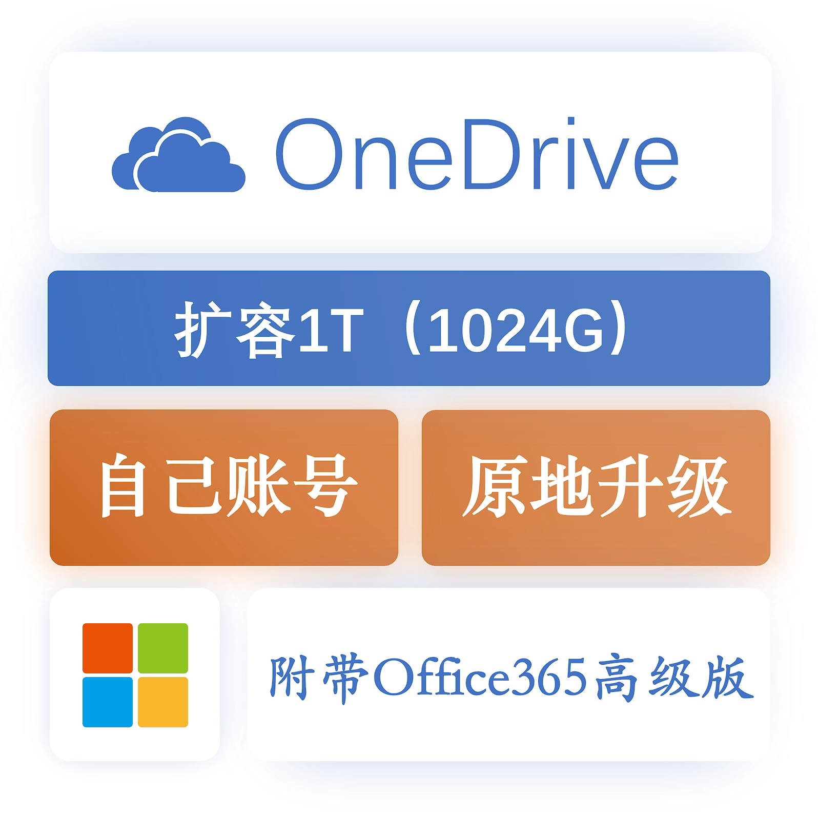 Расширение OneDrive 1T/1024 ГБ собственной учетной записи за 1 год.