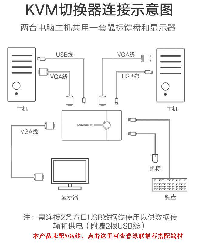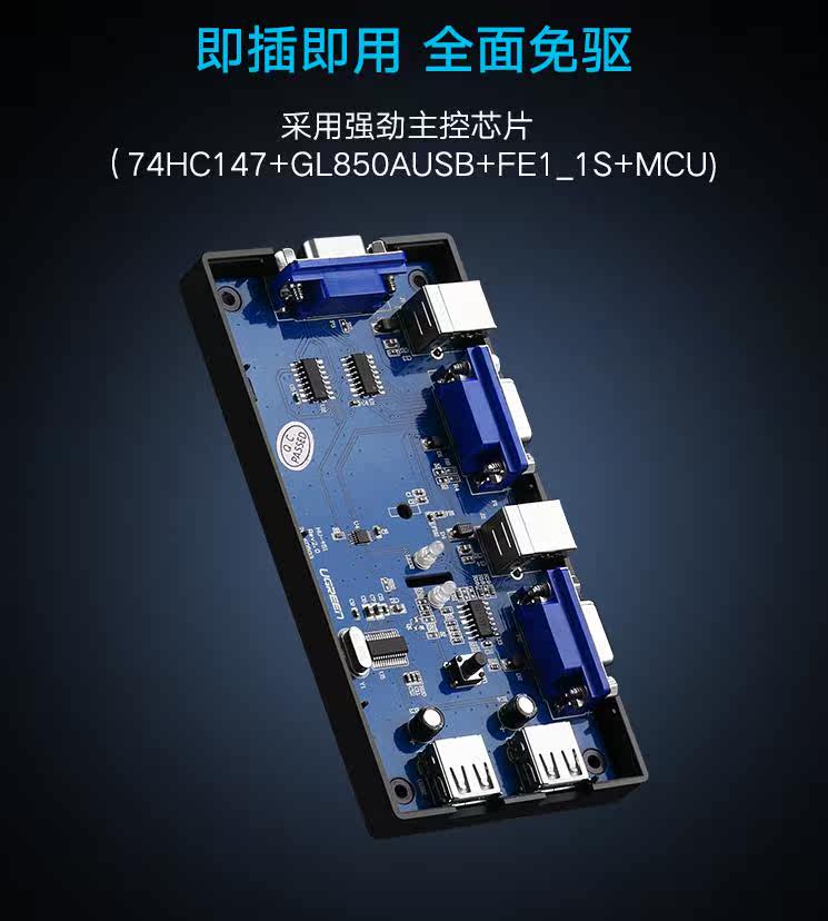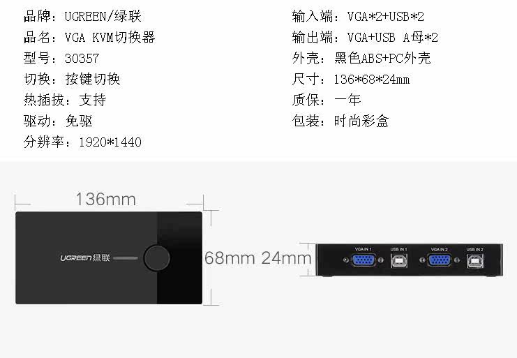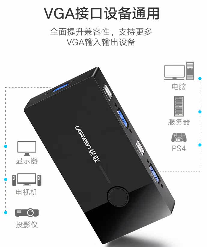 绿联 (Ugreen) 30357 KVM Переключатель VGA Video Cutter два -ин -One -out Compult Switch