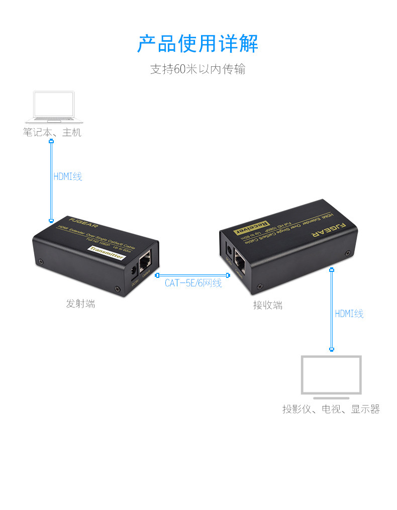 Fengjie HDMI Extender 60 метров через одно сетевой сеть RJ45 Extender Setwork Extender Extender Extender Extender Extender