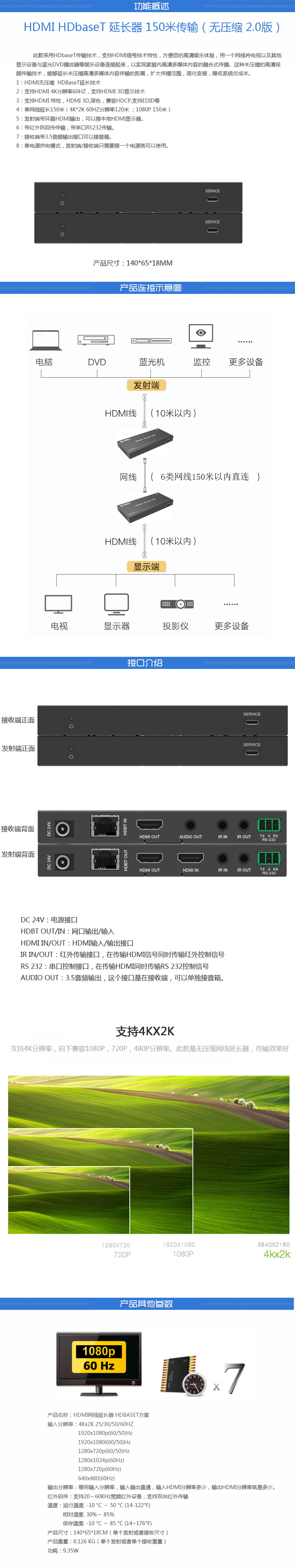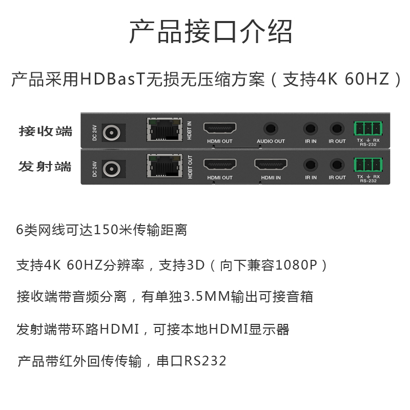 Возьмите 6 типов сетевых кабелей в качестве примера: 70 метров поддерживают 40 -метров, 1080p 70 м; 150 метров поддерживают 4K 120 метров и 1080p 150 метров.Обратите внимание, что 70 -метровая модель также является решением HDBaset, а 70 метров не поддерживают функцию разделения звука.