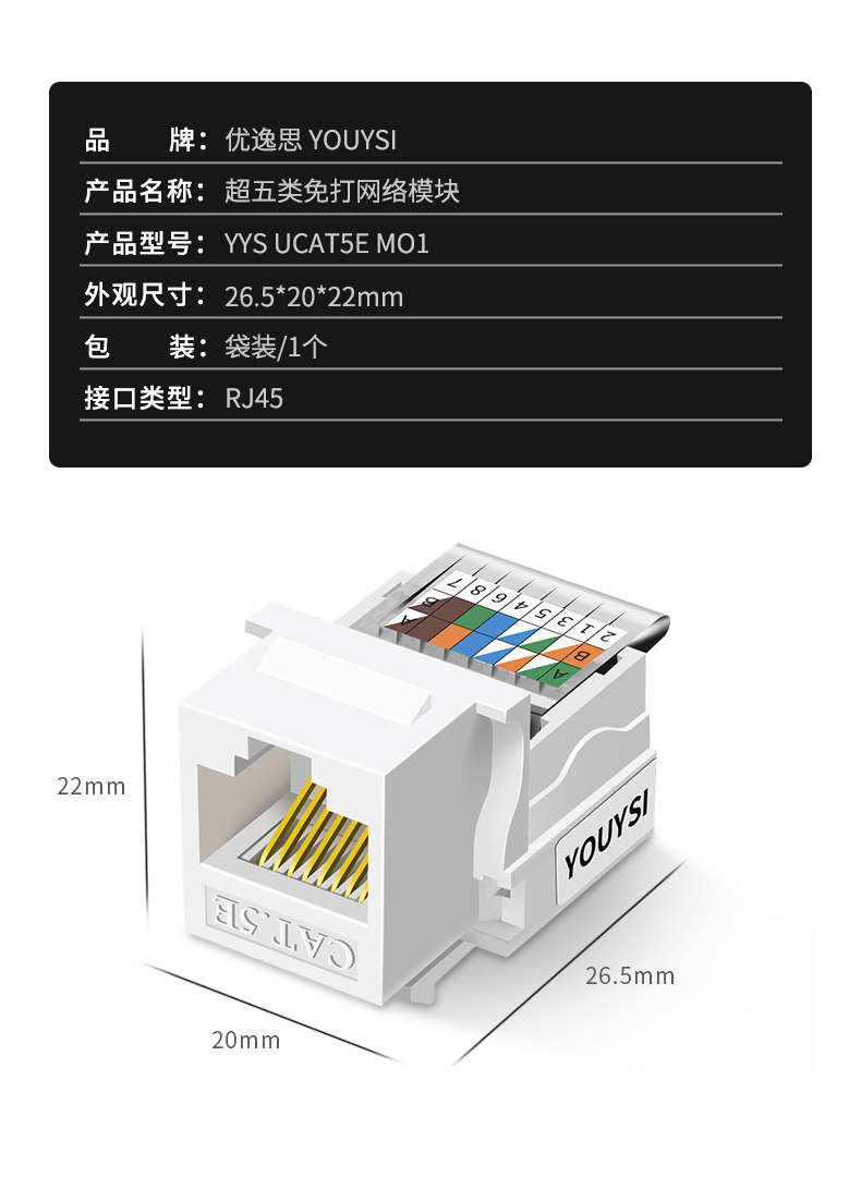 YOUYSI Сетевой модуль CAT6 Категория шесть гигабитов Gigabit Network Прогулка по категории 100M 5E без эфирного стыковочного стыковочного сокета Телефонная информация Информация о голосовом модуле Семейство Комплекточная инженерная проводка