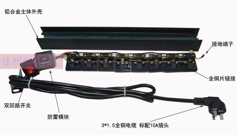 Шкаф PDU Выделенная силовая сокет 1U 8 -бит 19 -INCH INCH INTER LIGHTING SWITCE -ROPE -IRPEAT