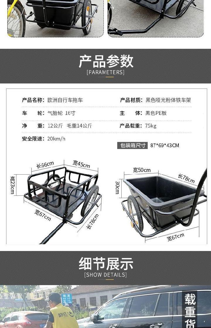 Прочный детский двухколесный багажный велосипед для кемпинга для велоспорта, прицеп для машины