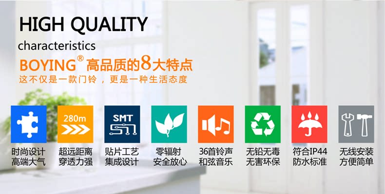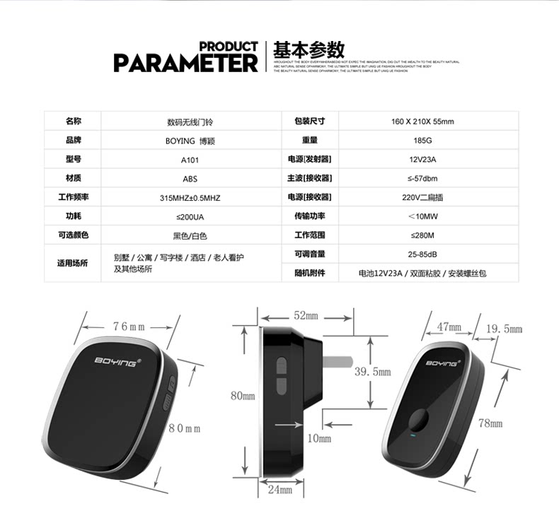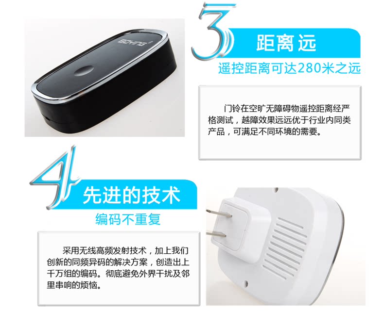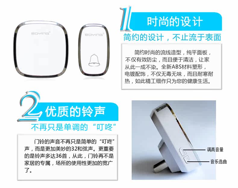 Boying Villa Home Беспроводная дверная звонок с длинной дистанции электронная цифровая музыка пожилые люди вызывает одну кнопку два ключа и два звонка
