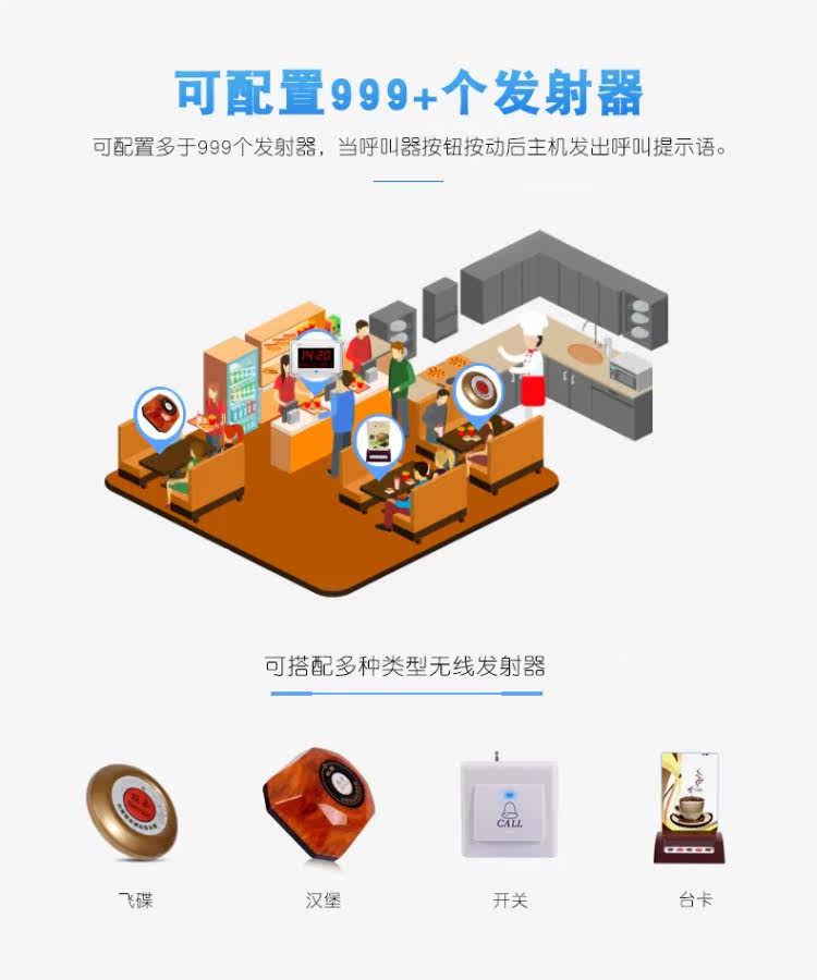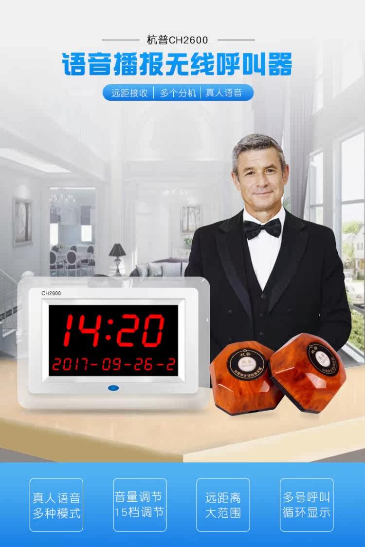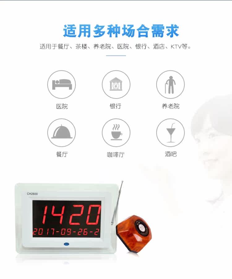 CH2600 Беспроводной номера вызывающего абонента -в ресторанном чайной башне кафе отель Fast Restaurant Internet Capture Qianqiu System System Server Vibration Call Call Call Call Bell Equipment.