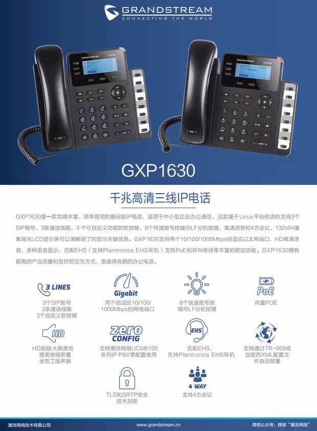 Trend Network GXP1630 Gigabit IP Voice Phone Phone Power Power Founter, 3SIP -учетная запись, 8 клавиш BLF